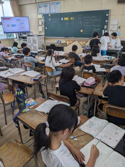 53−26の計算問題。1の位がひけない繰り下がりのある計算です。難しいけど、みんなしっかり考えています。
