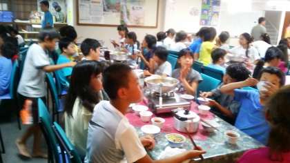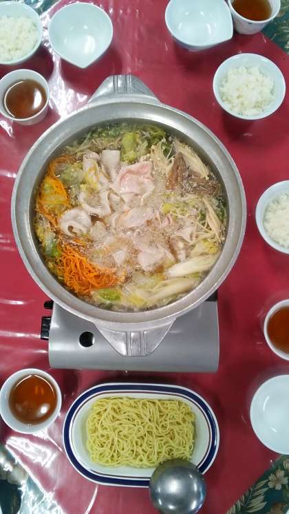 最後の夜は豚鍋です。ひとつの鍋を皆でつつく体験もよいものですね♪皆、よく食べます…