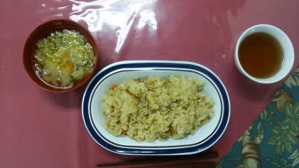 最後の昼食は、五目ごはんと味噌汁です。よく食べています♪