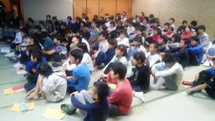 お腹もいっぱいになり、少し疲れも見られますが、鳥羽水族館の学芸員さんのお話に耳を傾けています。水族館の生き物達について、よくわかったかな!?
