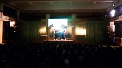 とても工夫された内容で、笑いがたくさんあって、子ども達は大喜びでした。終わってからは、指で影絵を作って遊んでいました…