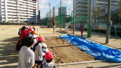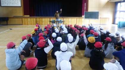 走り幅跳びで日本代表として活躍された荒川大輔さんをお招きし、お話を聞きました。幼い頃の夢を聞き、本気で取り組むことの大切さを学びました。運動場では、速く走るコツを聞き、目の前で走り幅跳びも見せていただきました♪