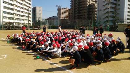 1月12日、晴天のもと城陽中学校区4小学校の6年生が「小小スポーツ交流会」に参加しました。合同チームを編成し、ドッジビーや大縄とびで楽しみました。4校児童が交流を深める絶好の機会となりました。