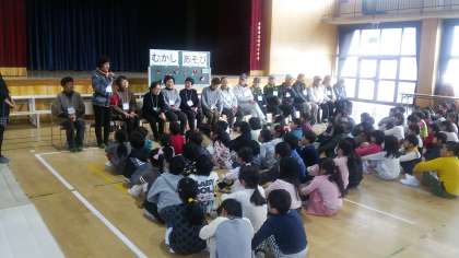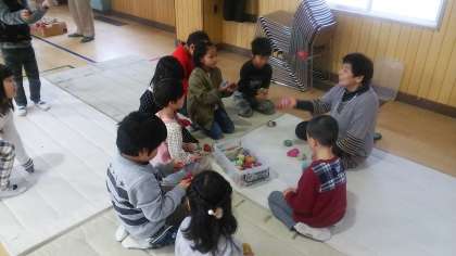 16名の地域の皆様にお越しいただき、むかしあそびに挑戦しました♪9つのグループにわかれ、けん玉やお手玉、めんこ、羽子板、あやとりなどをして楽しみました。