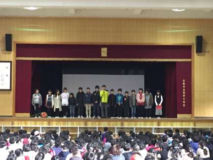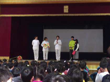 今日の集会では、給食委員会の発表があり、給食調理員さんに全クラスからの感謝状をお渡ししました。その後、給食委員会の子どもたちが給食に関わる人の劇を動画で発表しました。日ごろ何気なく口にしている給食ですが、農作物をつくってくださっている方や、運転手の方、調理員の方などたくさんの人たちの思いがこめられていることが伝わればと思います。