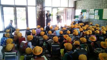 登下校中や帰宅後の安全な過ごし方について、城東警察の方からお話を聞きました。みんな真剣に聞いていました♪