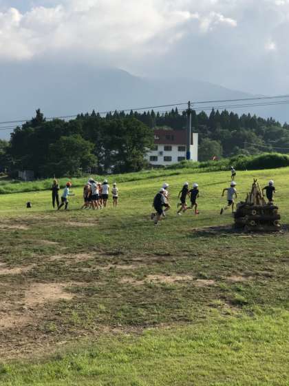 魚を食べた後は、宿舎前の広場でグループ活動です。