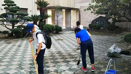 自然の恐怖を痛感するとともに、被災された皆様に心よりお見舞い申しあげます。小学校もガラスが割れたり倒木が見られたりするなどいくつかの被害がありました。また本日は、早朝より保護者の皆様のご協力と高学年児童による清掃活動のおかげで、平常通り授業を展開することができました。お礼申し上げます。