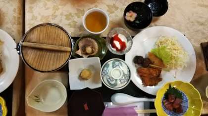 マグロ、すき焼き、トンカツ等盛りだくさんの料理で、お腹いっぱいになりました。