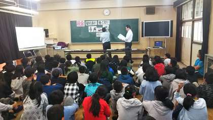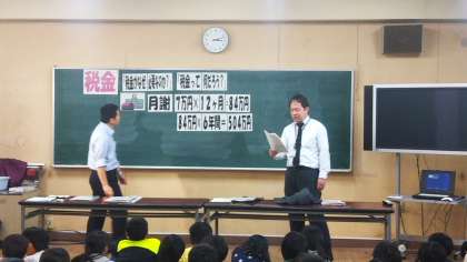 税務署より署員の方にお越しいただき、「税金って何?」「税金って必要なの?」等、税金に関する疑問を学習しました。
