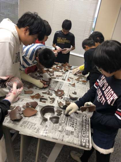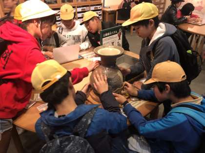 大阪城天守閣や歴史博物館を見学し、考古学体験に取り組みました。