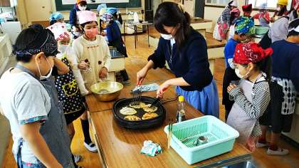 国際理解教育の一貫として、韓国・朝鮮の文化について学びました。今回は協力してチジミを作りました。