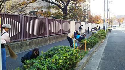 日頃学校施設を活用している地域やPTAの皆さんと子ども達で、早朝より一斉清掃を行いました。