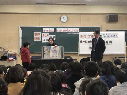 城東警察より、署員の方にお越しいただき、非行防止ならびに犯罪被害防止について教えていただきました。