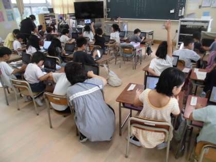 での授業風景です。1年生の皆さん、タブレットには慣れてきたかな?