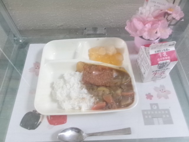 また、給食も今週からスタートしました。入学・進級をお祝いする献立として、カツカレーライスやフルーツゼリーなどが提供され、子どもたちの笑顔があふれる時間となりました。学校生活の柱の一つである給食の時間も、大切にしながら安全に進めています。