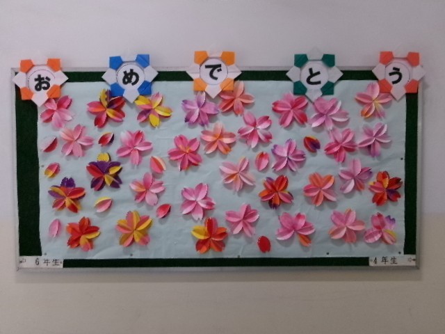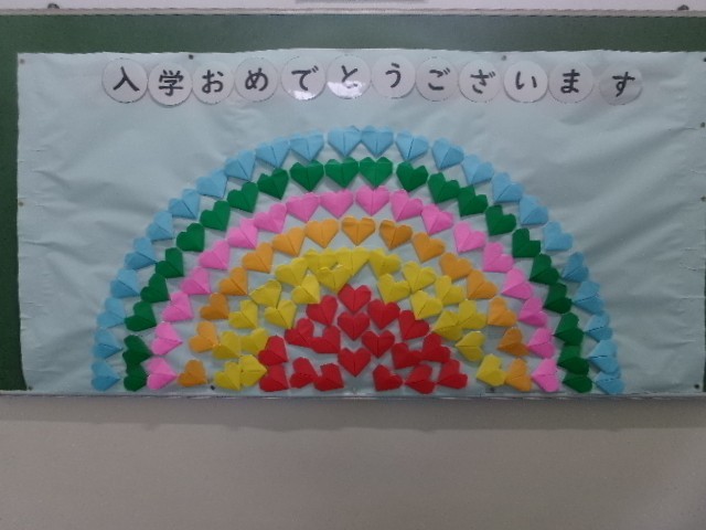 入学式、始業式をはじめ、各学年・学級での活動が順調に始まっています。校内は、新入生を温かく迎えようと、各学年の子どもたちが心を込めて制作した掲示物で彩られています。「入学おめでとう」「おめでとうございます」の言葉とともに、色とりどりの花や虹、立体的な作品が廊下や教室前に並び、新1年生を迎える学校全体の思いが伝わってくるかと思います。始業式では、新しい学年・新しい学級での学校生活が始まり、子どもたちは少し緊張しながらも、真剣な表情で話を聞いていました。教室では、学級開きや学習のオリエンテーションが進み、落ち着いた雰囲気の中で授業が始まっています。