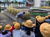 鎌の使い方を教えていただき、みんなで稲刈りをしました。