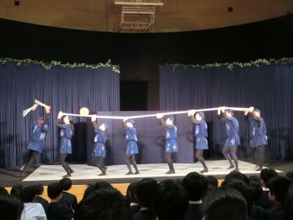 本日、文化芸術による子どもの育成事業として劇団あとむによる音楽劇を鑑賞しました。「あとむの時間はアンデルセン」という内容で様々なパフォーマンスを披露していただき、子どもたちも楽しく鑑賞していました。また6年生は8月下旬にワークショップにて指導していただいたこともあり、途中飛び入り参加もしました。