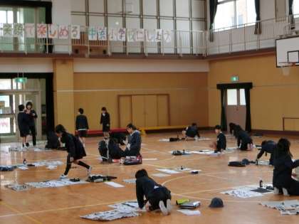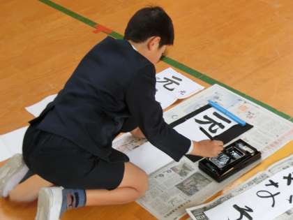 本日4年生が国語科の学習で書き初めを行いました。講堂で広々と集中して取り組んでいました。普段半紙に書いている大きさと違い、少し戸惑いながらも書き初め用の半紙に丁寧に書いていました。