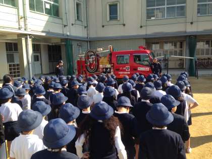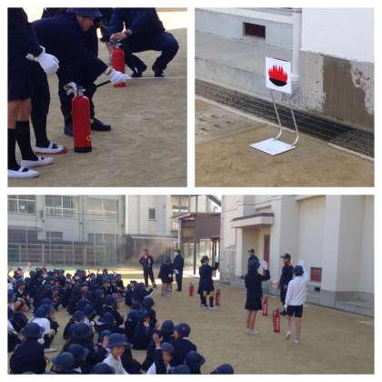 城東消防署から署員の方に来ていただき、緊張した雰囲気の中で避難訓練ができました。