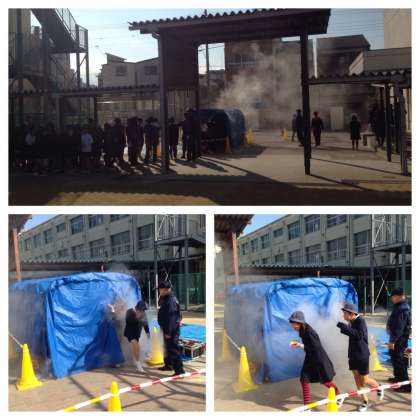 給食室より出火・延焼中と想定して、避難訓練が行われました。