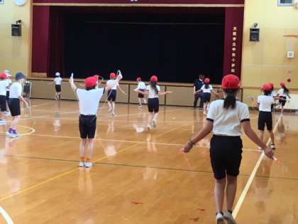 今日は雨天のため、体育の授業も講堂で行いました。一人ひとり距離をあけて、体操したり縄跳びしたり。多くの子どもたちが長期間、室内で過ごしてきたので、怪我に気を付けながら、少しずつ運動量を増やしていきたいと思います。