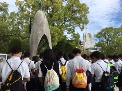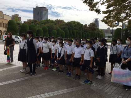 2歳の時に被爆し、12歳で短い生涯を閉じた佐々木禎子さんの同級生の方々のご尽力で設立された「原爆の子の像」の前で平和セレモニーを行いました。