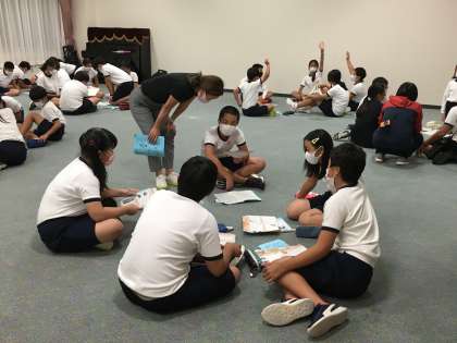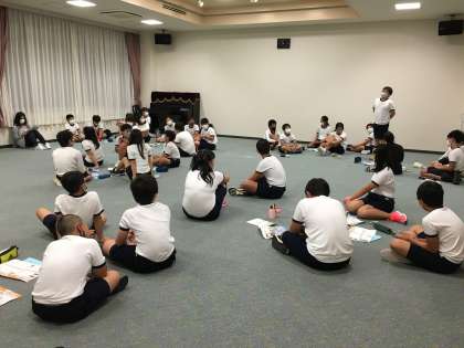 夕食後、今日一日の平和学習の振り返りを行いました。これまでにも調べ学習を重ね、戦争と平和について考えてきましたが、子どもたちは平和記念公園や資料館の見学を通じて、知ること、伝えることの大切さをより強く実感したようです。しっかり考え、意見を発表していました。