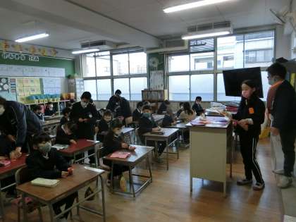 本日5年生が中心となって、6年生に向けての感謝の気持ちやお祝いする気持ちを伝える活動としてメッセージカードの作成を行いました。5年生が各教室に出向き、カードの作り方等を説明していました。最高学年に向けての準備が始まっています。