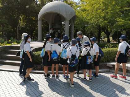 平和公園内をピースボランティアの方々に案内をしていただきました。様々な歴史的遺構や慰霊碑等を見学して回りました。