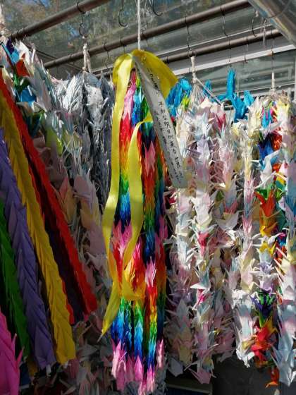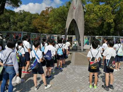 中浜小学校の全員で平和を願いながら折った折り鶴を捧げました。