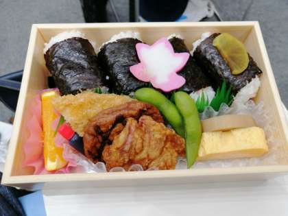 フィールドワークを終え、追悼祈念館をお借りして昼食のお弁当をいただきました。