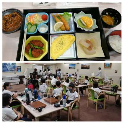 神田山荘に到着しました。開舎式を行い、宿舎の方々にごあいさつをしました。その後は待ちに待った夕食です。とても美味しかったです。ごちそうさまでした!