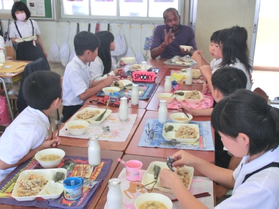 ちまきは米の粉などで作ったお餅を、笹の葉でくるんで蒸して作ります。白いお餅には、あんこなどは入っていませんが、甘くておいしかったです。5年生では、「元気で大きくなりますように」という願いをこめて、みんなでいただきました。