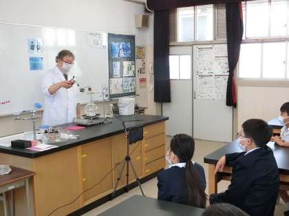 本日4年生が大阪市立科学館の学芸員によるサイエンスショーの出前授業を受けました。テーマは「水の科学」で湯気と水蒸気の違いや水から水蒸気に気化した場合の体積変化などを学習しました。子どもたちは熱心に観察していました。
