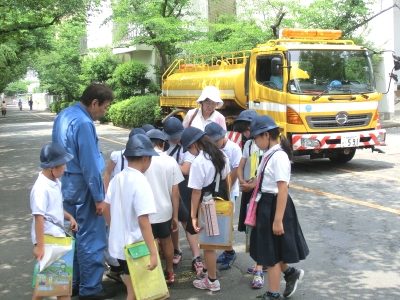 6月2日(火)午前、4年生は徒歩で5分足らずのところにある、「中浜下水処理場」へ社会見学に行きました。学習のねらいは「家庭や工場からでる汚れた水や雨水は、どこに行くのかを知る」です。