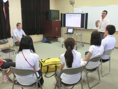 6月4日(木)放課後、教職員が集まり、「救急救命講習会」を開催しました。講師は応急手当普及員の教頭先生です。
