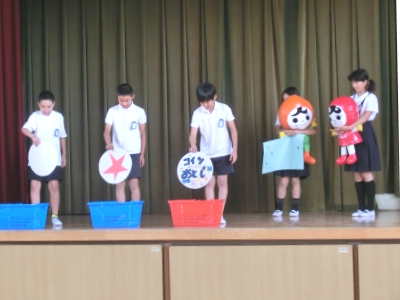 6月8日(月)1限、6年生は来る10日(水)に開催の「中浜フレンドリーランド」のCMリハーサルを体育館で行いました。