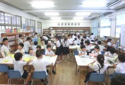 6月16日(火)昼休み、「図書館開放」を行いました。急に雨が降り運動場で遊べなくなったので、全校児童の3分の1、約70名が来館【写真左】しました。