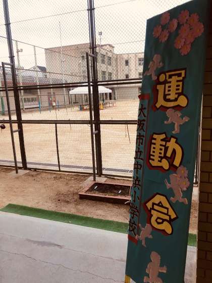 日曜日の天候は曇りの予報。雨が降っても大丈夫なように話し合いながら準備をすすめることができました。恒例の中浜小学校運動会の立て看板は当日の朝、設置します。