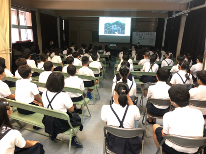 その時の様子を、写真や絵画を使ってお話してくださいました。子ども達は平和について考えることができた時間となりました。
