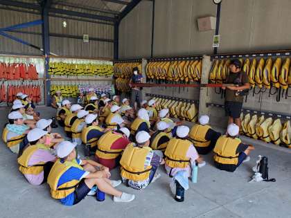 ライフジャケットの準備や道具の運搬もあり、大忙しです。