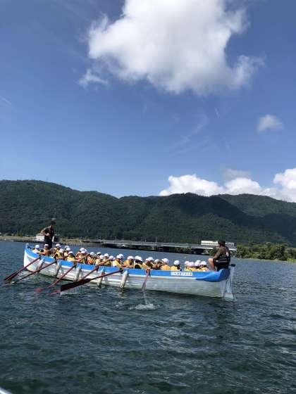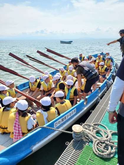 子ども達全員が、心を一つにして、オールを漕いでいます。