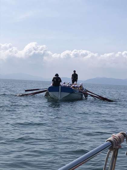 晴天の中! カッターに乗り込みました!! 出航です!!!