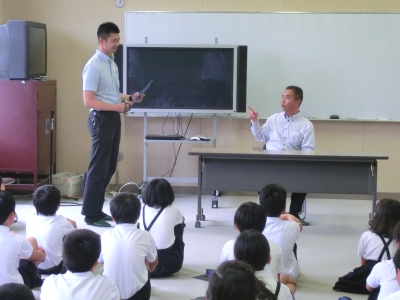 夏休みに入ると、万引きやいたずら、火遊びなどが多くなり、警察から注意されることが多くなるということでした。今年にはいって補導された小・中学生の人数を聞いて、驚いていました。いじめやスマートフォン、インターネットの使用について、実際に被害にあった出来事をお話ししていただき、児童たちは理解したようです。