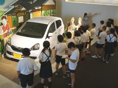 8時に貸切バスで出発し、自動車工場に向かいました。工場では車の組立ライン見学と車の歴史についても学びました。体験コーナーでは、車の設計やデザインなどを体験しました。
