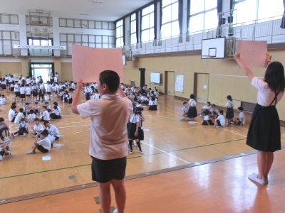 今日の集会は「何人とおったかな」 ≪児童集会≫