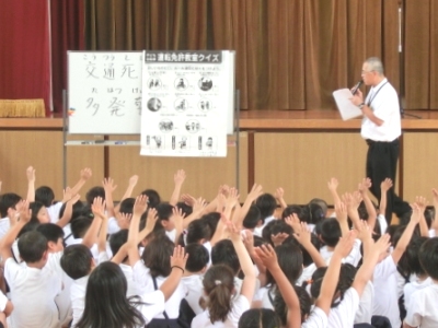 1学期最後の児童朝会 「交通死亡事故多発警報」発令
