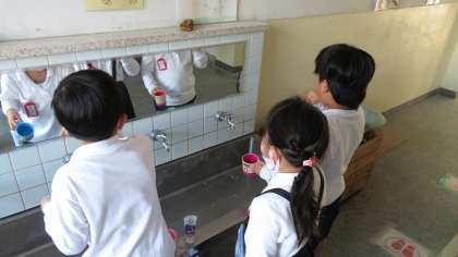 その日の歯みがきタイムでは、30回数えながら歯の王さまを、丁寧にみがいている姿がみられました。